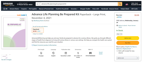 Mount Vernon, N.Y. (February, 2022) – The importance of planning continues to be in the forefront of our lives. Although seniors continue to be guarded and mindful with safety measures in group settings, education and wellness, as well as those programs involving the arts, we need to continue to find opportunities to ask each other…how prepared are we? In 2019, Wartburg and the Westchester End-of-Life Coalition (WELC), an organization committed to improving the end-of-life experience for patients and families, announced the official transfer of WELC’s programs, activities, and materials to Wartburg. In 2020, Wartburg completed the transition to “Advance Life Planning,” and refreshed the trademarked Be Prepared Kits. Today, we are pleased to share the news that Be Prepared Kits are now available through Amazon Kindle Direct Publishing.