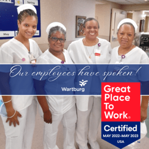 [Mount Vernon, New York] – Great Place to Work Institute and its senior care partner Activated Insights have honored Wartburg with certification as a Great Place to Work. The certification process involved surveying 100% of employees from all across Wartburg’s care services and evaluating more than 60 elements of team members’ experience on the job. These included employee pride in the organization’s community impact, belief that their work makes a difference, and feeling their work has special meaning. Rankings are based on employees’ experiences, no matter who they are or what they do.