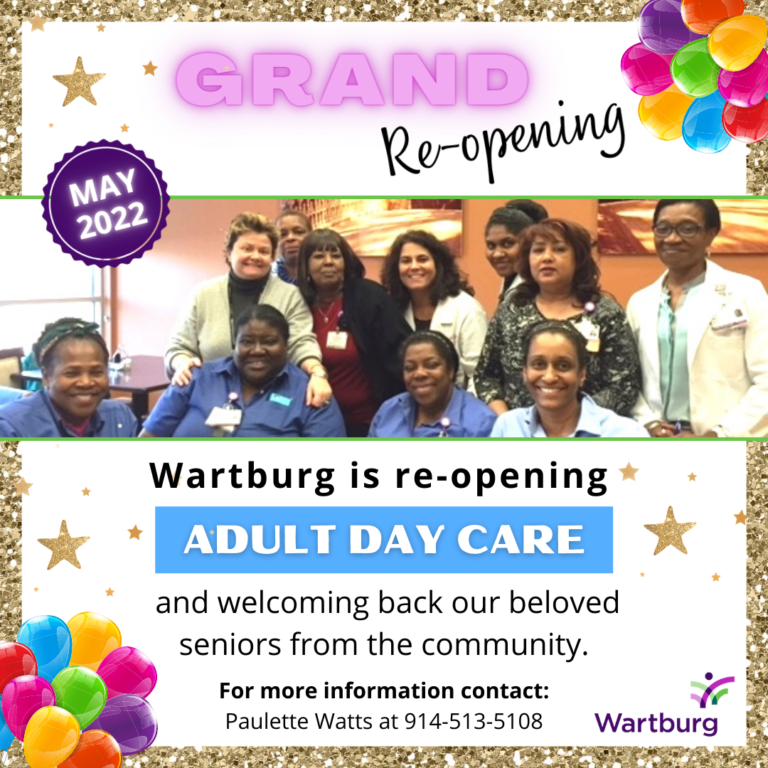 Mount Vernon, New York: Wartburg’s Adult Day program, which provides medical services and socialization to adults of all ages, will be re-opening, after a lengthy closure, on May 15th, 2022. Adult Day offers a wide range of clinical management services, activities, social engagement, and nutritious meals within 10,000 square feet of space. Adult Day provides seniors living in the community with another option to assist in maintaining a healthy independent life.