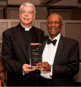 Rev. Amandus J. Derr, Wartburg Board Chair with award for Honoree Dr. Fred B. Renwick